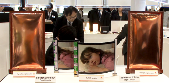 Dopo i display, ecco spuntare l’altoparlante flessibile, che si può arrotolare e piegare. Potrà in futuro essere integrato nei display e anche nei vestiti e sui muri di casa. Presentato da fujifilm durante un salone sulle nanotecnologie a Tokyo, l’innovativo prototipo riproduce i suoni senza alcuna perdita di qualità o distorsione, con una qualità acustica equivalente agli altoparlanti tradizionali. Per dimostrare la sua flessibilità i ricercatori di Fujifilm, l’hanno presentato sullo stand sotto diverse configurazioni, dalla pellicola che si arrotola al ventaglio (foto) fino all’origami (vedi video sotto). Il diaframma chiamato Beat, richiedeva un materiale morbido, che però non assorbiva le vibrazioni. Era difficile per i ricercatori sviluppare un materiale flessibile ma anche acustico. Il laboratorio di Fujifilm ha quindi miscelato il polimero viscoelastico, che rimane morbido quando la superficie è curvata o piegato, con ceramiche piezoelettriche che s’induriscono e vibrano, quando sottoposte ad una gamma audio da 20Hz a 20kHz. Chi sa se un giorno potremmo infilarli nel taschino della camicia! Futurix aveva già pubblicato nel 2009 Presto l’altoparlante sottile come un foglio, dalla Gran Bretagna.